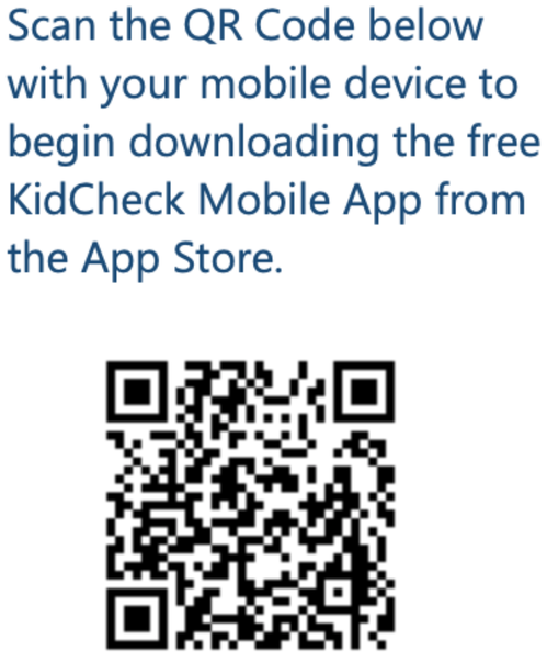 We ask all families to please take a moment to sign into your account and verify that your information and that of your child(ren) is up to date. You can log into KidCheck at www.kidcheck.com or by scanning the below QR code from your phone's camera to access the KidCheck app. No account yet? That’s OK! You can sign up today by visiting www.kidcheck.com or asking one of our amazing volunteers to help you Sunday morning.